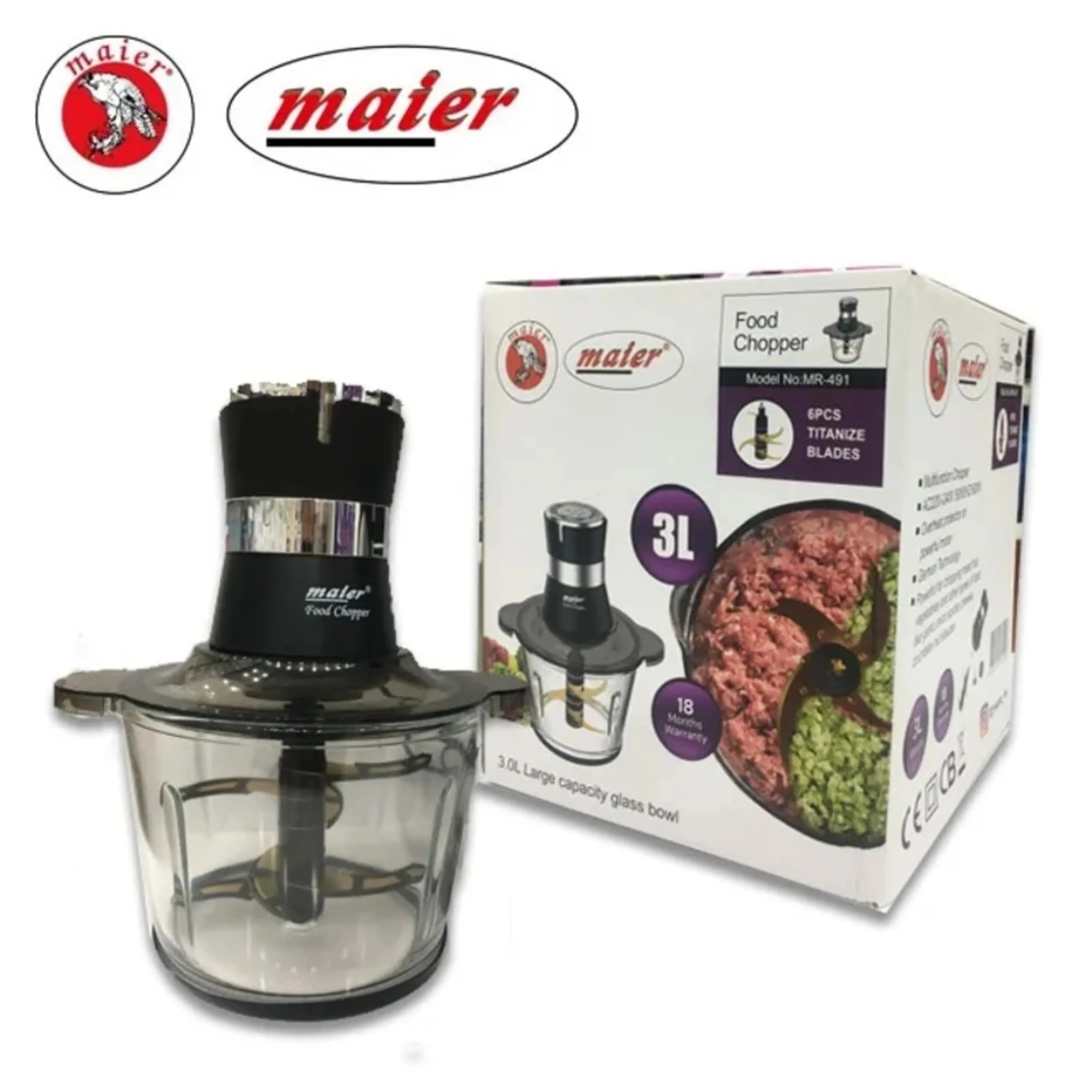 مشخصاتمشخصات کلیبرندمایرمدلMR-491رنگمشکیکشور سازندهچینمشخصات فنیتوان مصرفی600 واتتنظیمات سرعتدو سرعتهعملکردهاخردکنظرفیت خردکن3 لیترجنس ظرف خردکنپیرکسعملکرد پالسداردنوع کنترلدکمه فشاریتعداد تیغه ها6 تاجنس تیغه هاتیتانیومجنس بدنهاستیللوازم جانبینداردقابلیت شستشوی قطعات در ماشین ظرفشوییداردنشانگرنداردابعاد