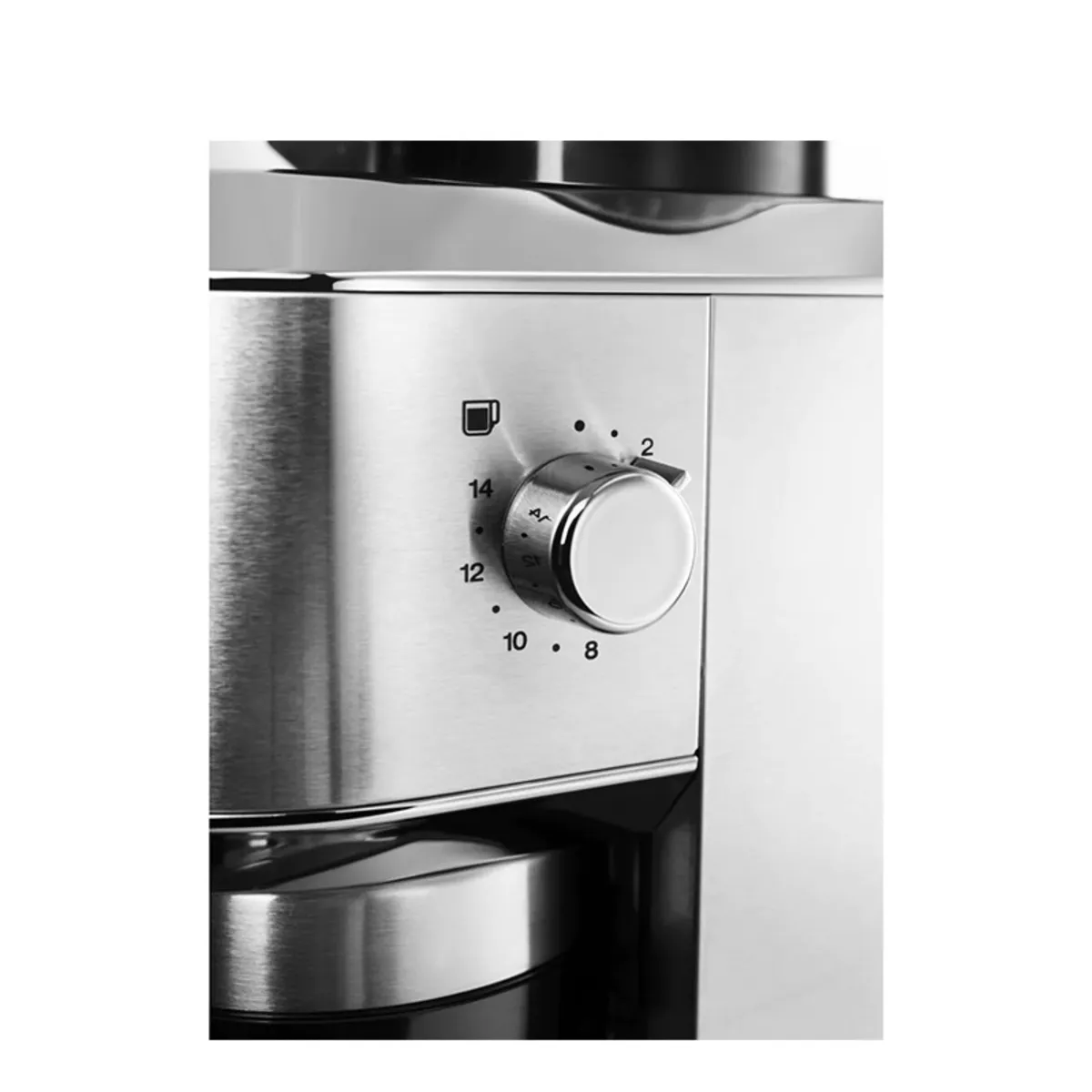 اگر به دنبال نوشیدن قهوه با حفظ طعم واقعی هستید و نیاز به آسیاب کردن دقیق دانه های آن دارید آسیاب قهوه دلونگی مدل DELONGHI KG 520.M یک انتخاب مناسب برای شما خواهد بود. این دستگاه خوش طراحی با توان مصرفی 150 وات و ظرفیت مخزن 350 گرم با بهره گیری از تیغه های فولادی با عملکردی مشابه آسیاب سنگی با حفظ طعم، اقدام به آسیاب دانه های قهوه میکند. قابلیت تنظیم میزان آسیاب برای سه سبک تهیه پودر قهوه اعم از اسپرسو، چکه ای (Pour Over) و فرانسه در قالب 18 درجه متفاوت و همچنین ظرفیت تهیه قهوه تا حداکثر 14 فنجان از ویژگی های آسیاب KG 520.M دلونگی به حساب میآید. قابلیت نصب تمپر به جای مخزن قهوه آسیاب شده و وجود برس تمیز کننده تیغه ها و ظرف مخصوص قهوه آسیاب شده با ظرفیت 170 گرم در اقلام جانبی دستگاه از سایر امکانات DELONGHI KG 520.M میباشد.