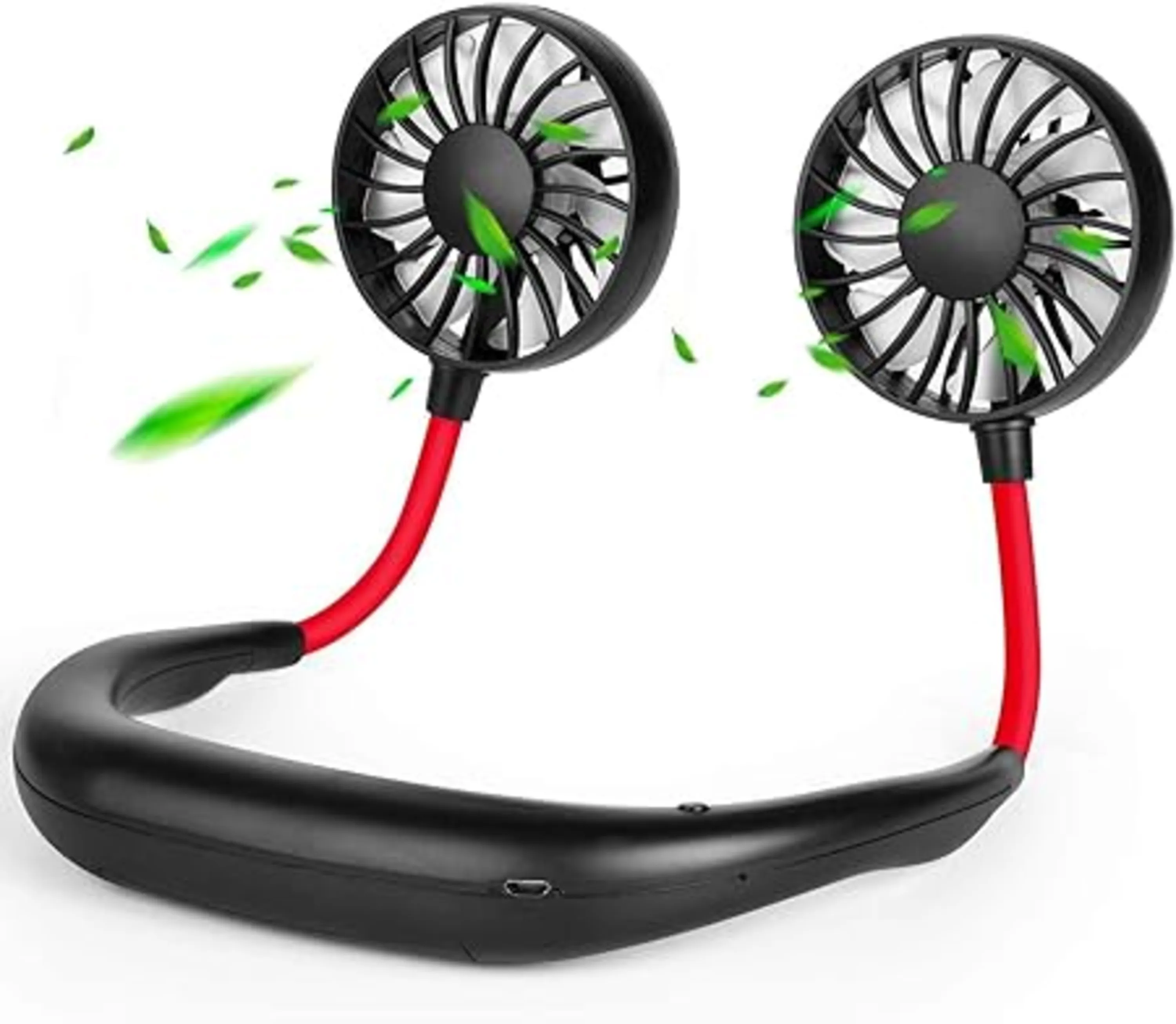 از خنک کننده جریان هوا و بدون نگه داشتن دست لذت ببرید . با توجه به طراحی نیازی به استفاده از دست نمیباشد و فقط آن را بر روی گردن خود بگذارید و همچنین شما می توانید کارهای دیگر را همزمان انجام دهید . دارای سرعت باد کم / متوسط / قوی قابل تنظیم ، همچنین می توانید زاویه های باد مناسب را برای رفع نیاز خود تنظیم کنید . باتری قابل شارژ 1200mAh میباشد و می تواند توسط دستگاههای 5 ولت خروجی ، در 2 ساعت شارژ کامل شارژ شود . ایده آل برای خنک شدن در محل های فضای باز ، کمپینگ ، پیک نیک ، مسابقات ورزشی ، سفر ، کنسرت و غیره . نه تنها قابل استفاده در گردن ، بلکه می تواند روی میز نیز استفاده شود. به اندازه کافی کوچک برای قرار دادن در کیف یا جیب .