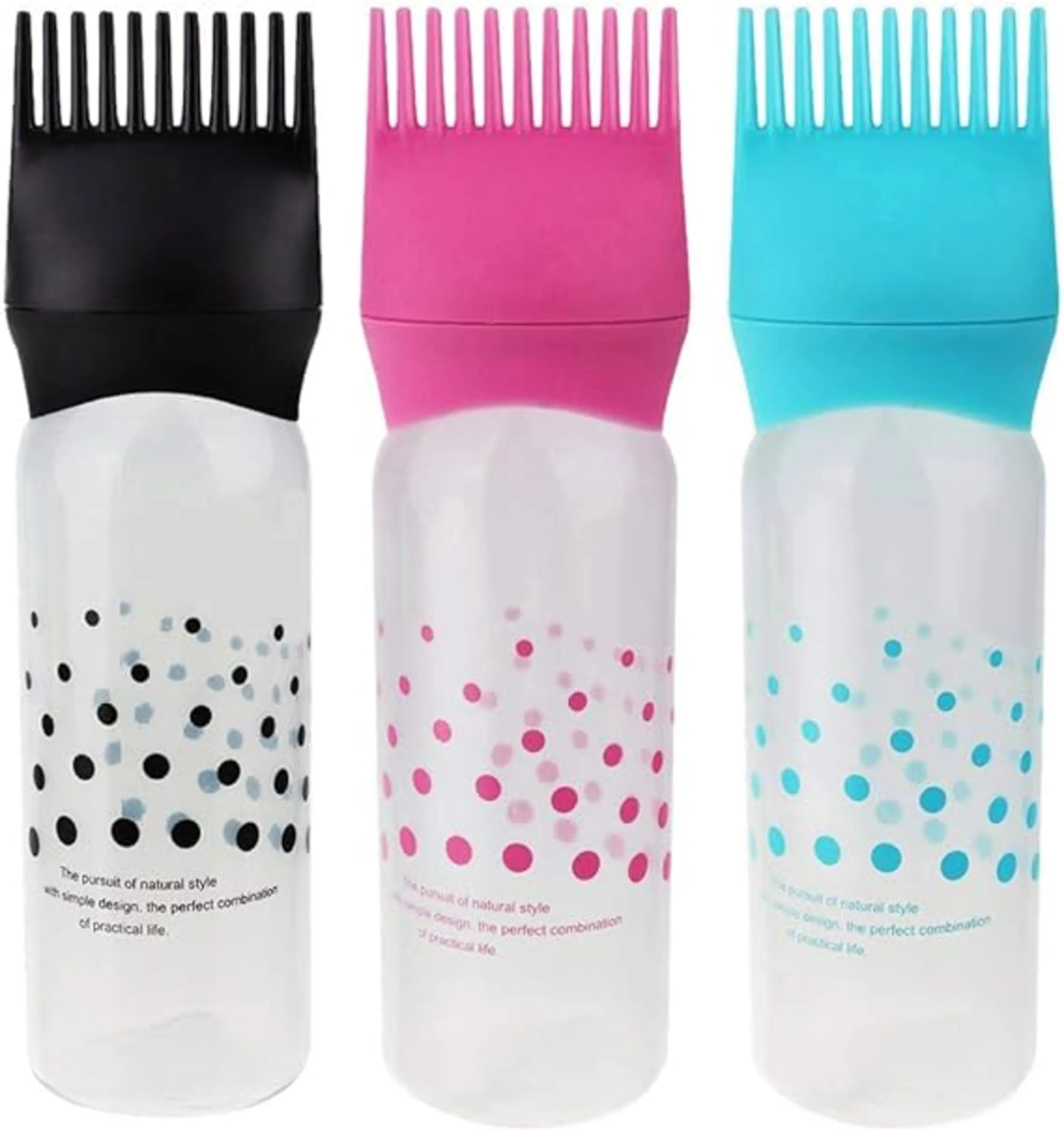 بطری پلاستیکی برای ریختن روغن و روغن درمانی کف سر این بطری بخاطر داشتن اپلیکاتور شانه ای بصورت خطی و مستقیم همزمان با شانه کشیدن مو، روغن را به کف سر میرساند شانه ی بطری کاملا محکم و دارای منافذ ریز برای خروج روغن می باشد مناسب برای انواع مو سر بطری مانند شانه میماند و کف سر را خراش نمیدهد مگر اینکه خودتان محکم بکشید نباید روغن یا آب داغ داخل بطری ریخته شود یک ابزار کاربردی برای کسانی که میخواند بدون کثیف کاری موهاشان را روغن درمانی کنندد