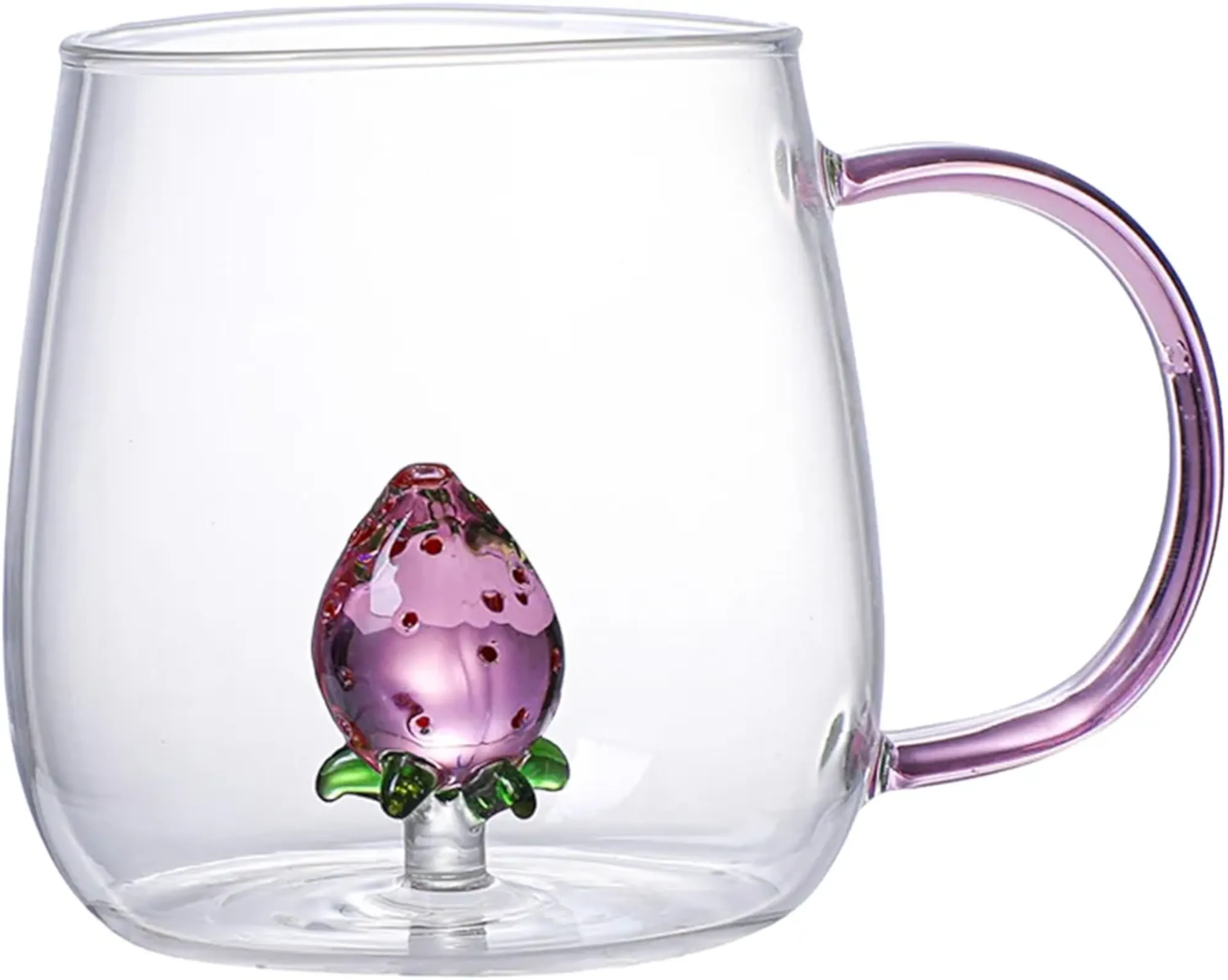 لیوان پیرکس دسته رنگی طرح توت فرنگی😍😍